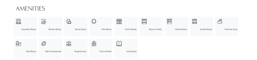 The project includes various themed markets such as spice bazar, crockery market, gold souk, and artisan zones to celebrate cultural heritage and support local businesses.